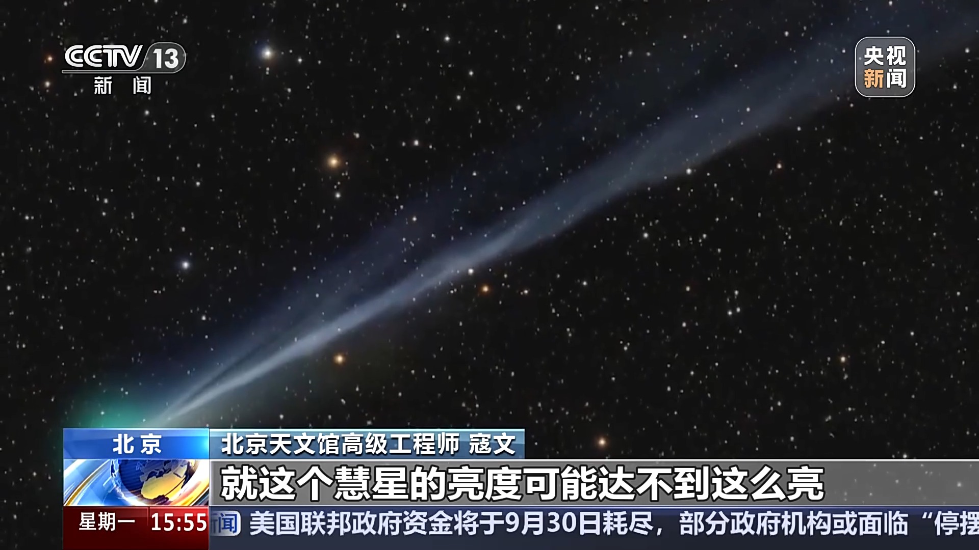 北京天文馆高级工程师 寇文:最乐观的预报,这颗彗星的亮度可能达到两等左右。所谓两等左右,应该说是一个很容易用肉眼直接看到的彗星。常规的预报,这个彗星的亮度可能达不到这么亮,但亮度也在五六等以上,应该是今年非常亮的一颗彗星。当然彗星的预报不是那么准,而且彗星本身,随时可能会发生各种异常情况,我们拭目以待吧。