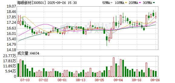 证券日报网讯 9月26日晚间,海顺新材发布公告称,截至2025年9月25日,公司通过深圳证券交易所股票交易系统以集中竞价交易方式回购公司股份累计5,872,875股,约占公司总股本的3.03%(以2025年9月19日公司总股本193,537,918股为基准计算)。